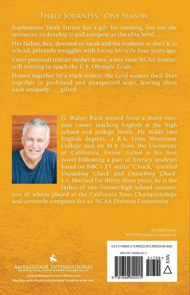 Three Journeys. One Season. Sophomore Sarah Turner has a gift for running, but not the resources to develop it and compete at the elite level. Her father, Ben, devoted to Sarah and his students at their K-12 school, privately struggles with losing his wife four years ago. Enter personal trainer Amber Jones, a one-time NCAA finalist, still striving to reach the U.S. Olympic Trials. Drawn together by a track season, the Lord weaves their lives together in profound and unexpected ways, leaving them each uniquely . . . gifted.