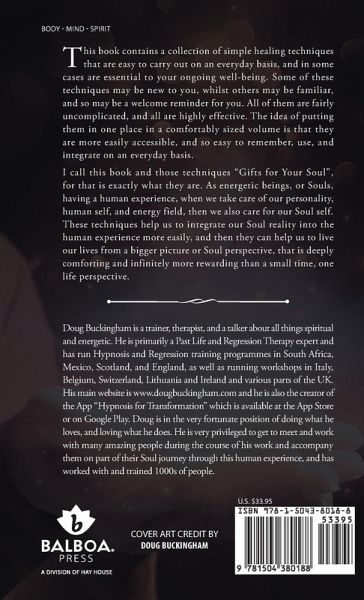 This book contains a collection of simple healing techniques that are easy to carry out on an everyday basis and, in some cases, are essential to your ongoing well-being. Some of these techniques may be new to you, while others may be familiar and so may be a welcome reminder for you. All of them are fairly uncomplicated, and all are highly effective. The idea of putting them in one place in a comfortably sized volume is that they are more easily accessible and so easy to remember, use, and integrate on an everyday basis. I call this book and those techniques Gifts for Your Soul, for that is exactly what they are. As energetic beings, or souls, having a human experience, when we take care of our personality, human self, and energy field, we also care for our soul self. These techniques help us integrate our soul reality into the human experience more easily, and then they can help us live our lives from a bigger picture or soul perspective, which is deeply comforting and infinitely more rewarding than a small-time, one-life perspective.