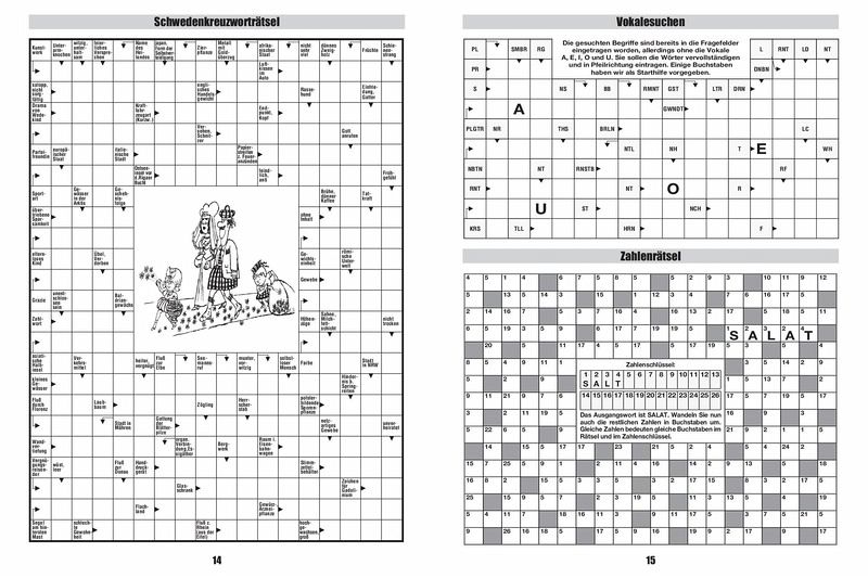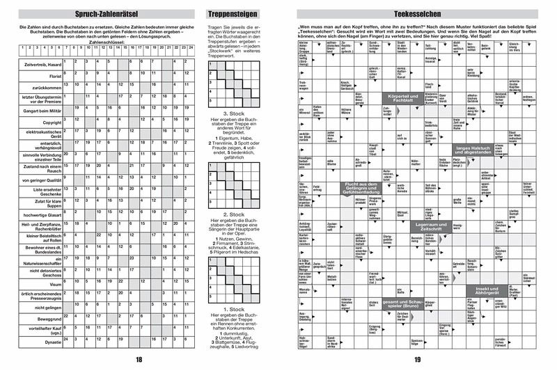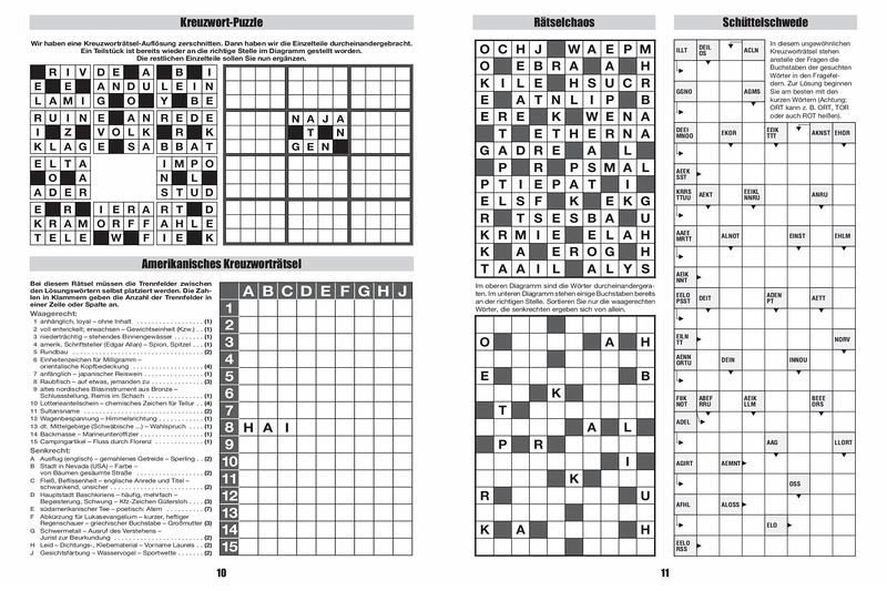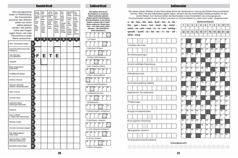 - Kreuzworträtsel, Bilderrätsel, Silbenrätsel, Wabenrätsel, Zahlenrätsel und vieles mehr