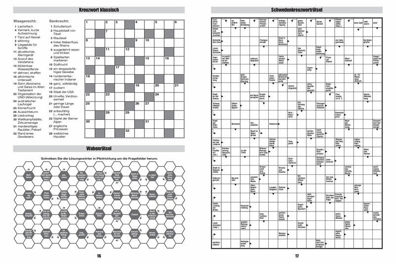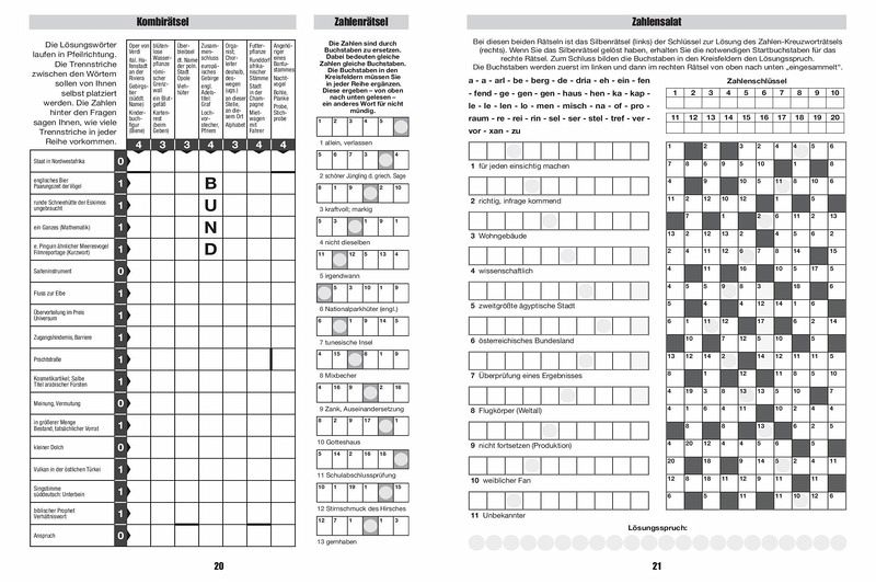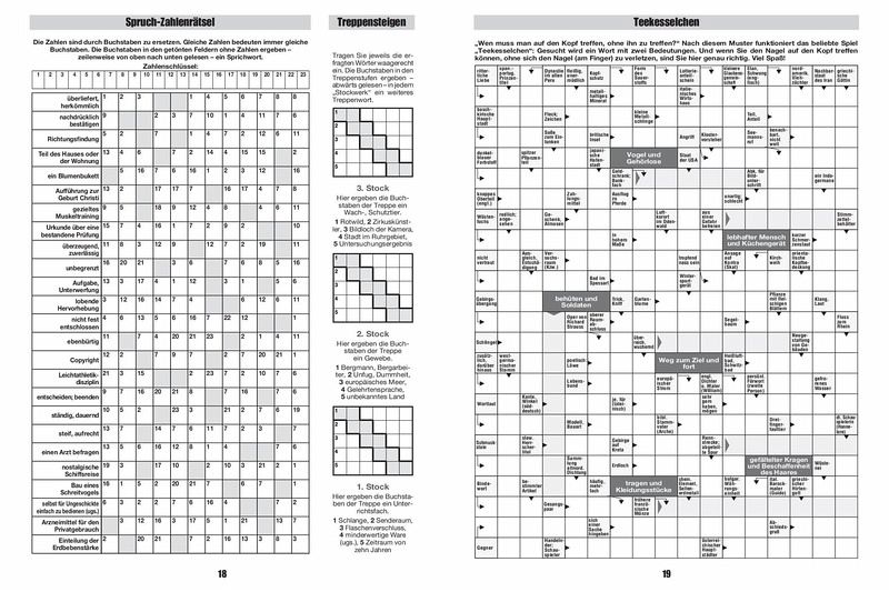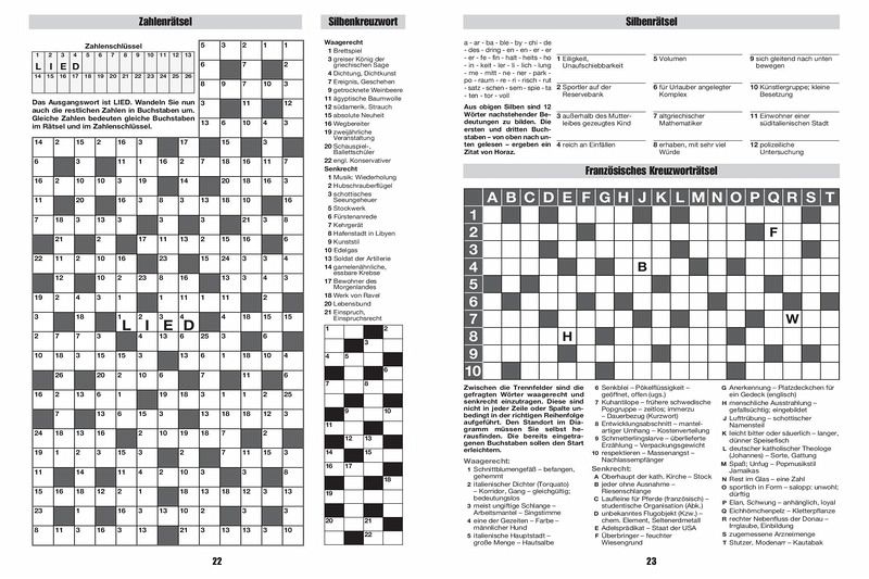 - Kreuzworträtsel, Bilderrätsel, Silbenrätsel, Wabenrätsel, Zahlenrätsel und vieles mehr