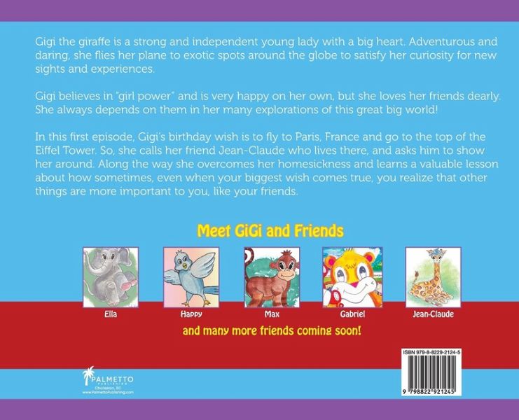 Gigi the giraffe is a strong and independent young lady with a big heart. Adventurous and daring, she flies her plane to exotic spots around the globe to satisfy her curiosity for new sights and experiences. Gigi believes in "girl power" and is very happy on her own, but she loves her friends dearly. She always depends on them in her many explorations of this great big world! In this first episode, Gigi's birthday wish is to fly to Paris, France and go to the top of the Eiffel Tower. So, she calls her friend Jean-Claude who lives there, and asks him to show her around. Along the way she overcomes her homesickness and learns a valuable lesson about how sometimes, even when your biggest wish comes true, you realize that other things are more important to you, like your friends