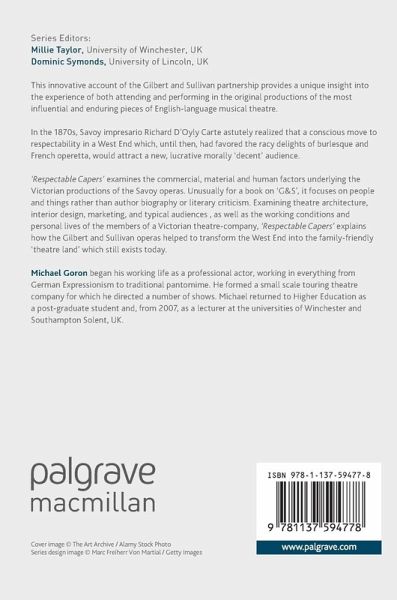 This book examines the commercial, material and human factors underlying the Victorian productions of the Savoy operas. Unusually for a book on 'G&S', it focuses on people and things rather than author biography or literary criticism. Examining theatre architecture, interior design, marketing, and typical audiences, as well as the working conditions and personal lives of the members of a Victorian theatre-company, 'Respectable Capers' explains how the Gilbert and Sullivan operas helped to transform the West End into the family-friendly 'theatre land' which still exists today.