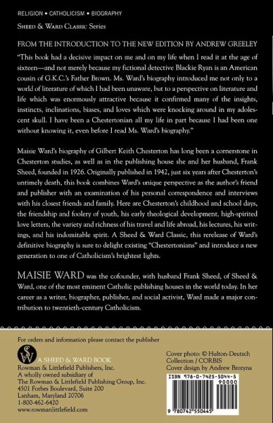 Maisie Ward's biography of Gilbert Keith Chesterton has long been a cornerstone in Chesterton studies, as well as in the publishing house she and her husband, Frank Sheed, founded in 1926. Originally published in 1942, just six years after Chesterton's untimely death, this book combines Ward's unique perspective as the author's friend and publisher with an examination of his personal correspondence and interviews with his closest friends and family. Here are Chesterton's childhood and school days, the friendship and foolery of youth, his early theological development, high spirited love letters, the variety and richness of his travel and life abroad, his lectures, his writings, and his indominable spirit. A Sheed & Ward Classic, this re-release of Ward's definitive biography is sure to delight existing "Chestertonians" and introduce a new generation to one of Catholicism's brightest lights. From the new introduction by Andrew Greeley: "This book had a decisive impact on me and on my life when I read it at the age of sixteen-and not merely because my fictional detective Blackie Ryan is an American cousin of GKC's Father Brown. Ms. Ward's biography introduced me not only to a world of literature of which I had been unaware, but to a perspective on literature and life which was enormously attractive because it confirmed many of the insights, instincts, inclinations, biases, and loves which were knocking around in my adolescent skull. I have been a Chestertonian all my life in part because I had been one without knowing it even before I read Ms. Ward's biography."