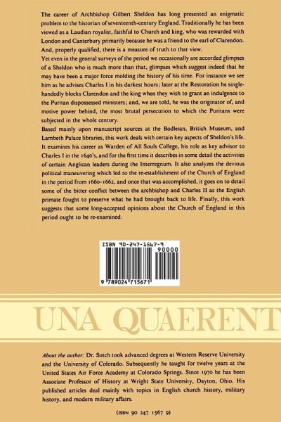 The place of Gilbert Sheldon in seventeenth century history and his influence upon the events of the period have long presented a tantalizing problem. A historian exploring the archives of the time cannot help but be impressed by the ubiquitous appearances of the archbishop. Yet the frequent references too often provide little detail, so that what emerges is a wraith-like picture of the man and a very uncertain account of his activities. As a result it is difficult to know what to think of Sheldon. He has been termed a "Laudian," but Mathew Wren, Laud's loyal assistant and sharer of his imprisonment, was cempletely baffled by the initials "G. Sh." which appeared in a letter sent to him in the early 1650's. Also labeled a staunch Tory and a firm believer in the institution of monarchy, Shelden showed no compunction whatever about lecturing the king on his duties or in boldly epposing the royal wishes when his lectures were ignored. He has been described as a man of "iron character," yet he was invariably soft-spoken and gentle to those in his immediate presence. He is pictured as a ruthless persecutor, but he often offered assistance, material and otherwise, to those who had been his opponents. Supposedly he was avaricious, yet the record suggests that during the Interregnum he impoverished himself to assist needy friends and church acquain tances, seme of whem he barely knew.