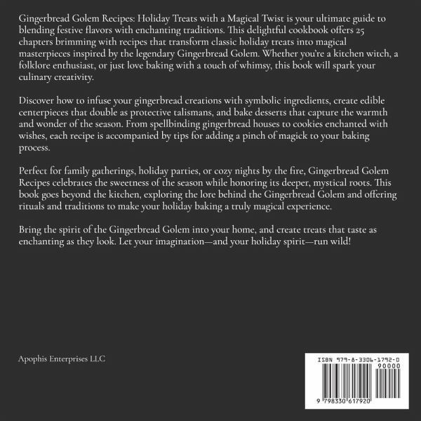 Gingerbread Golem Recipes: Holiday Treats with a Magical Twist is your ultimate guide to blending festive flavors with enchanting traditions. This delightful cookbook offers 25 chapters brimming with recipes that transform classic holiday treats into magical masterpieces inspired by the legendary Gingerbread Golem. Whether you're a kitchen witch, a folklore enthusiast, or just love baking with a touch of whimsy, this book will spark your culinary creativity. Discover how to infuse your gingerbread creations with symbolic ingredients, create edible centerpieces that double as protective talismans, and bake desserts that capture the warmth and wonder of the season. From spellbinding gingerbread houses to cookies enchanted with wishes, each recipe is accompanied by tips for adding a pinch of magick to your baking process. Perfect for family gatherings, holiday parties, or cozy nights by the fire, Gingerbread Golem Recipes celebrates the sweetness of the season while honoring its deeper, mystical roots. This book goes beyond the kitchen, exploring the lore behind the Gingerbread Golem and offering rituals and traditions to make your holiday baking a truly magical experience. Bring the spirit of the Gingerbread Golem into your home, and create treats that taste as enchanting as they look. Let your imagination-and your holiday spirit-run wild!