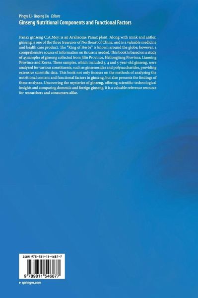 Chapter 1. Analysis of Amino Acids in Ginseng.- Chapter 2. Analysis of Proteins in Ginseng.- Chapter 3. Analysis of Saccharides and Polysaccharides in Ginseng.- Chapter 4. Analysis of Volatile Oils in Ginseng.- Chapter 5. Analysis of Nucleotides in Ginseng.- Chapter 6. Analysis of Flavonoids in Ginseng.- Chapter 7. Analysis of Ginsenosides in Ginseng.- Chapter 8. Analysis of Organic Acids in Ginseng.- Chapter 9. Analysis of Vitamins in Ginseng.- Chapter 10. Analysis of Inorganic Elemenst in Ginseng.- Chapter 11. Analysis of Sterols in Ginseng.