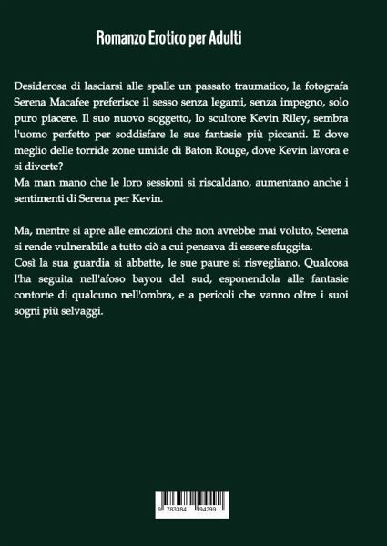 Desiderosa di lasciarsi alle spalle un passato traumatico, la fotografa Serena Macafee preferisce il sesso senza legami, senza impegno, solo puro piacere. Il suo nuovo soggetto, lo scultore Kevin Riley, sembra l'uomo perfetto per soddisfare le sue fantasie più piccanti. E dove meglio delle torride zone umide di Baton Rouge, dove Kevin lavora e si diverte?Ma man mano che le loro sessioni si riscaldano, aumentano anche i sentimenti di Serena per Kevin. Ma, mentre si apre alle emozioni che non avrebbe mai voluto, Serena si rende vulnerabile a tutto ciò a cui pensava di essere sfuggita. Così la sua guardia si abbatte, le sue paure si risvegliano. Qualcosa l'ha seguita nell'afoso bayou del sud, esponendola alle fantasie contorte di qualcuno nell'ombra, e a pericoli che vanno oltre i suoi sogni più selvaggi.