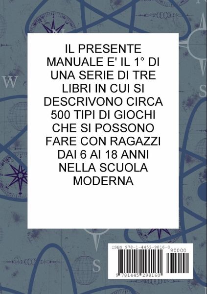 IL PRESENTE MANUALE E' IL 1° DI UNA SERIE DI TRE LIBRI IN CUI SI DESCRIVONO CIRCA 500 TIPI DI GIOCHI CHE SI POSSONO FARE CON RAGAZZI DAI 6 AI 18 ANNI NELLA SCUOLA MODERNA