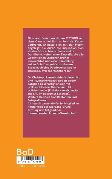 Giordano Bruno wurde am 17.2.1600 auf dem Campo dei fiori in Rom als Ketzer verbrannt. Er hatte sich mit der Macht angelegt, die durch die Inquisition sich als das Böse schlechthin darstellte: Der Kirche. Neben einer Biografie, die alle wesentlichen Stationen Brunos ausleuchtet, und einer Darstellung seiner Schriften gehört zu diesem Essay auch eine Überlegung: Was ist das Böse? Wer repräsentiert es?