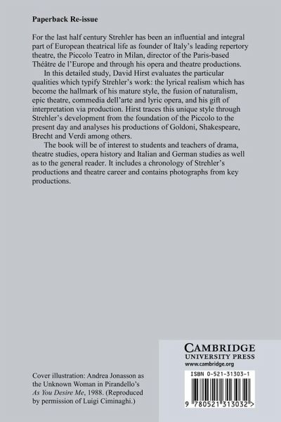 For at least the last half-century, Strehler has been an influential and integral part of European theatrical life; today he is most closely associated with the Teatro Piccolo in Milan, Italy's foremost repertory theatre. Outside Italy, Strehler is best known through his directorship of the Paris-based Théâtre de l'Europe, his opera productions, and the plays in the Piccolo repertoire which have toured widely. In this detailed study, David Hirst evaluates the particular qualities which typify Strehler's work: the lyrical realism which has become the hallmark of his mature style, the fusion of naturalism, epic theatre, commedia dell'arte and lyric opera, and the gift of interpretation and production. Hirst traces this unique style through Strehler's development from the foundation of the Piccolo to the present day and analyses his productions of Goldoni, Shakespeare, Brecht and Verdi among others.