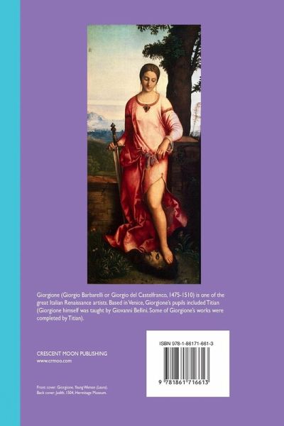 GIORGIONE By Herbert Cook Giorgione (Giorgio Barbarelli or Giorgio del Castelfranco, 1475-1510) is one of the great Italian Renaissance artists. Based in Venice, Giorgione's pupils included Titian (Giorgione himself was taught by Giovanni Bellini. Some of Giorgione's works were completed by Titian). Giorgione's art includes Madonnas, a Judith, Three Philosophers, portraits, nudes (Sleeping Venus), and a portrait of a young woman known as 'Laura'. This book considers Giorgione's career and all of his output. Fully illustrated with works by Giorgione and his contemporaries. Bibliography and notes. Painters Series. 188 pages. www.crmoon.com