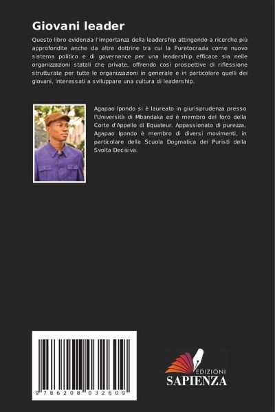 Questo libro evidenzia l¿importanza della leadership attingendo a ricerche più approfondite anche da altre dottrine tra cui la Puretocrazia come nuovo sistema politico e di governance per una leadership efficace sia nelle organizzazioni statali che private, offrendo così prospettive di riflessione strutturate per tutte le organizzazioni in generale e in particolare quelli dei giovani, interessati a sviluppare una cultura di leadership.