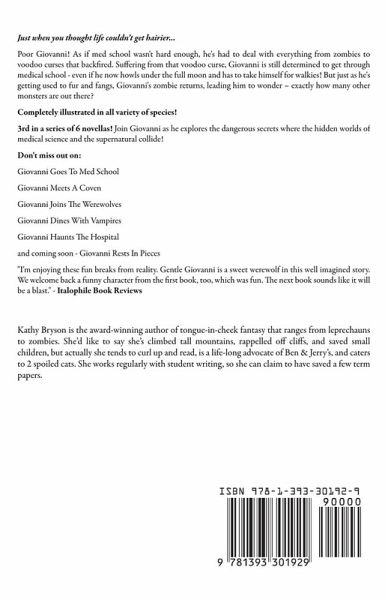 Just when you thought life couldn't get hairier… Poor Giovanni! As if med school wasn't hard enough, he's had to deal with everything from zombies to voodoo curses that backfired. Suffering from that voodoo curse, Giovanni is still determined to get through medical school - even if he now howls under the full moon and has to take himself for walkies! But just as he's getting used to fur and fangs, Giovanni's zombie returns, leading him to wonder - exactly how many other monsters are out there? Completely illustrated in all variety of species! 3rd in a series of 6 novellas! Join Giovanni as he explores the dangerous secrets where the hidden worlds of medical science and the supernatural collide! Don't miss out on: Giovanni Goes To Med School Giovanni Meets A Coven Giovanni Joins The Werewolves Giovanni Dines With Vampires Giovanni Haunts The Hospital and coming soon - Giovanni Rests In Pieces "I'm enjoying these fun breaks from reality. Gentle Giovanni is a sweet werewolf in this well imagined story. We welcome back a funny character from the first book, too, which was fun. The next book sounds like it will be a blast." - Italophile Book Reviews