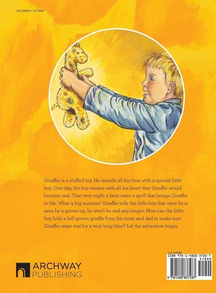 Giraffie is a stuffed toy. He spends all his time with a special little boy. One day, the boy wishes with all his heart that Giraffie would become real. That very night a fairy casts a spell that brings Giraffie to life. What a big surprise! Giraffie tells the little boy that once he is seen by a grown-up, he won't be real any longer. How can the little boy hide a full-grown giraffe from his mom and dad to make sure Giraffie stays real for a very long time? Let the adventure begin.