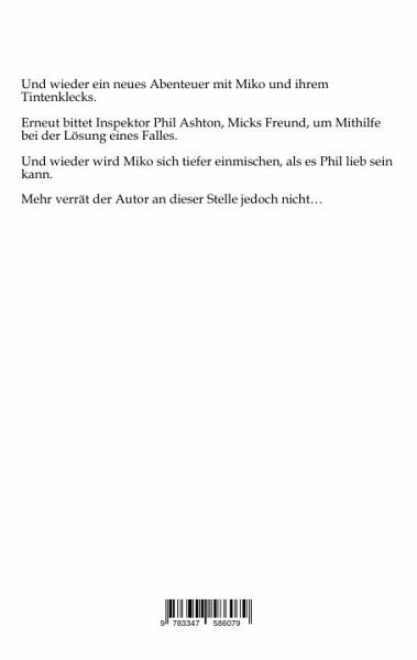 Und wieder ein neues Abenteuer mit Miko und ihrem Tintenklecks.Erneut bittet Inspektor Phil Ashton, Micks Freund, um Mithilfe bei der Lösung eines Falles.Und wieder wird Miko sich tiefer einmischen, als es Phil lieb sein kann. Mehr verrät der Autor an dieser Stelle jedoch nicht...
