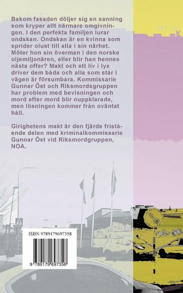 Girighetens makt är den fjärde fristående delen med kriminalkommissarie Gunnar Öst vid Riksmordgruppen, NOA. Bakom fasaden döljer sig en sanning som kryper allt närmare omgivningen. I den perfekta familjen lurar ondskan. Ondskan är en kvinna som sprider olust till alla i sin närhet. Möter hon sin överman i den norske oljemiljonären, eller blir han hennes nästa offer? Makt och ett liv i lyx driver dem båda och alla som står i vägen är försumbara. Kommissarie Gunnar Öst och Riksmordsgruppen har problem med bevisningen och mord efter mord blir ouppklarade, men lösningen kommer från oväntat håll.