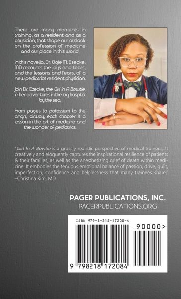 Join resident physician Dr. Ogie M. Ezeoke, the Girl In A Bowtie, in her adventures in the big hospital by the sea. From pages to potassium to the angry airway, each chapter is a lesson in the art of medicine and the wonder of pediatrics.