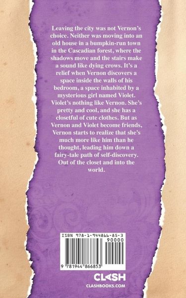 Leaving the city was not Vernon's choice. Neither was moving into an old house in a bumpkin-run town in the Cascadian forest, where the shadows move and the stairs make a sound like dying crows. It’s a relief when Vernon discovers a space inside the walls of his bedroom, a space inhabited by a mysterious girl named Violet. Violet’s nothing like Vernon. She’s pretty and cool, and she has a closetful of cute clothes. But as Vernon and Violet become friends, Vernon starts to realize that she’s much more like him than he thought, leading him down a fairy-tale path of self-discovery. Out of the closet and into the world.