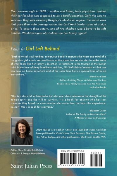 At age five, Judy Temes was living with her parents and brother in a small town near Hungary's southern border. Unlike most, the family had comforts: a roomy apartment, a television, even a vacation home. What more could anyone want? But for her father, a doctor and a survivor of the Holocaust, living among the people who stood by as his family was taken to their deaths in cattle cars had become untenable. On a summer night in 1969, the family packed the car for what was supposed to be a vacation to Vienna. Only this was no vacation. They were escaping Hungary's totalitarian regime, using tourist visas that allowed entry into a Western country. Such visas, however, came at a high price. One child had to be left behind. This was the government's way to ensure that citizens who left the country would return. The child left behind was "Juditka," who would go on to live with her grandmother in a tiny lakeside Hungarian village. When, if ever, would she see her family again? No one knew.
