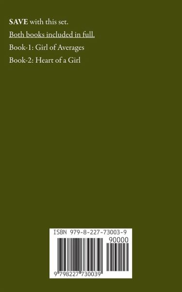 SAVE with this SET. In this continuous single story: 1. Girl of Averages is narrated by Mark Walters, in which his notions and biases about beauty and love cause him to almost bungle and lose the most wonderful girl. 2. Heart of a Girl is told by Mia Carpenter, who falls head-over-heels in love with a lonely and reclusive Mark, but struggles to get him. Both Books in FULL.