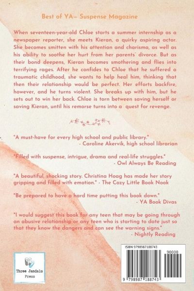 "An engrossing tale of a dangerous teen romance."--Kirkus Reviews Best of YA-Suspense magazine "Gripping." "Scarily accurate." "Unputdownable." "Powerful." "Beautiful & shocking." He was perfect. At first. The summer before senior year, seventeen-year-old Chloe thinks she's found the perfect boyfriend in Kieran, an aspiring actor, but he soon reveals a darker side to his charming quirks and carefree attitude. He's possessive, jealous and prone to violent fits of rageful blame. Chloe tries to help him but soon realizes that he is beyond her reach. She must get away from him, but Kieran will not let her go. Chloe faces the ultimate choice: save herself or save Kieran. This is a riveting, realistic story of a teen romance gone wrong, finding the courage to break free and the strength to survive.