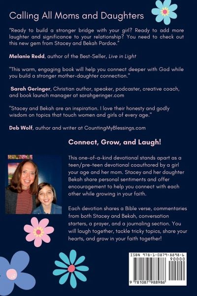 Calling all moms and daughters! Do you want to strengthen your relationship, grow closer together, and connect with God in new ways? Let this delightful mother-daughter devotional book serve as your guide! Why This Preteen and Teenage Girl Devotional Is Unique Unlike other tween and teenage girls' devotional books, this book is written by tween-daughter and mother coauthors. As a pre-teen, Bekah knows all about the struggles young women face. She addresses topics like how to handle an unwanted crush, managing stress, grumpy teachers, sibling squabbles, and much more! Prepare to laugh together, strengthen your relationship, talk about tricky topics, and seek God together. This devotional is the perfect tool for mothers and daughters who want to connect with each other in new ways while growing in faith. What's Inside Each Devotion Each devotion offers the following: A focus Bible verse A section called "Mom's Thoughts," written by Stacey A section called "Girl to Girl," written by Bekah A prayer to read out loud together A journaling section for mother and daughter to complete at a later time These mother-daughter devotions are heartwarming and full of personal stories from a real-life mother-daughter duo. Bekah shares testimony about her difficult adjustment to middle school, stressing out over homework, navigating grief, seeking God, and much more. Stacey offers insights gleaned over 12 years as a mom as well as two decades spent mentoring teenage girls. These devotions are sure to keep your attention, make you laugh, help you talk about difficult topics, and help you grow closer together as a mother and daughter. Who Is This Mother-Daughter Devotional Book for The devotional is written with a focus on ministering to girls ages 10-15; however, the topics discussed could be used for moms and daughters of any age. Most of the devotions are applicable regardless of age. If you are 80 and your daughter is 50, you are welcome here! Mom, you might need to offer additional explanations for some of the devotions if your daughter is younger than 10, but younger girls will glean insight from this book as well. Additionally, this is not a devotional exclusively for biological mothers and daughters. It could be used between a grandma and granddaughter, an aunt and a niece, an older sister and a younger sister, or an older mentor and a younger friend. Women of all ages will take something away from this book! With so many distractions competing for our attention, finding time to connect with each other and pursue God is more challenging now than ever. Let Girl to Girl help you build a stronger relationship while leading you deeper in your faith!