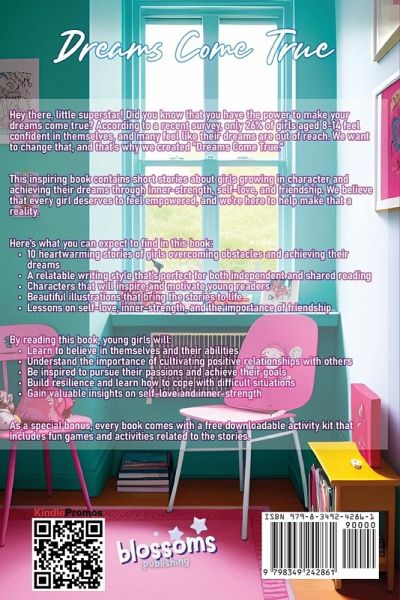 Did you know that whatever you dream, you have the power inside to make your Girls Can Dream? According to a recent survey, only 26% of girls aged 8-14 feel confident in themselves, and many feel like their dreams are out of reach. We understand that it can be tough for girls to navigate the challenges of growing up, but we believe that every girl has the potential to achieve greatness. Here's what you can expect to find in this book:10 heartwarming stories of girls overcoming obstacles and achieving their dreams A relatable writing style that's perfect for both independent and shared reading Characters that will inspire and motivate young readers Beautiful illustrations that bring the stories to life Lessons on self-love, inner-strength, and the importance of friendship By reading this book, young girls will:Learn to believe in themselves and their abilities Understand the importance of cultivating positive relationships with others Be inspired to pursue their passions and achieve their goals Build resilience and learn how to cope with difficult situations Gain valuable insights on self-love and inner-strength If you're looking for the perfect gift for the little girl in your life, "Girls Can Dream" is an excellent choice. Whether it's for a birthday, holiday, or just because, this book is sure to inspire and empower young readers.