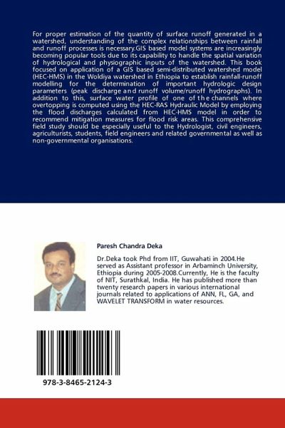 For proper estimation of the quantity of surface runoff generated in a watershed, understanding of the complex relationships between rainfall and runoff processes is necessary.GIS based model systems are increasingly becoming popular tools due to its capability to handle the spatial variation of hydrological and physiographic inputs of the watershed. This book focused on application of a GIS based semi-distributed watershed model (HEC-HMS) in the Woldiya watershed in Ethiopia to establish rainfall-runoff modelling for the determination of important hydrologic design parameters (peak discharge and runoff volume/runoff hydrographs). In addition to this, surface water profile of one of the channels where overtopping is computed using the HEC-RAS Hydraulic Model by employing the flood discharges calculated from HEC-HMS model in order to recommend mitigation measures for flood risk areas. This comprehensive field study should be especially useful to the Hydrologist, civil engineers, agriculturists, students, field engineers and related governmental as well as non-governmental organisations.