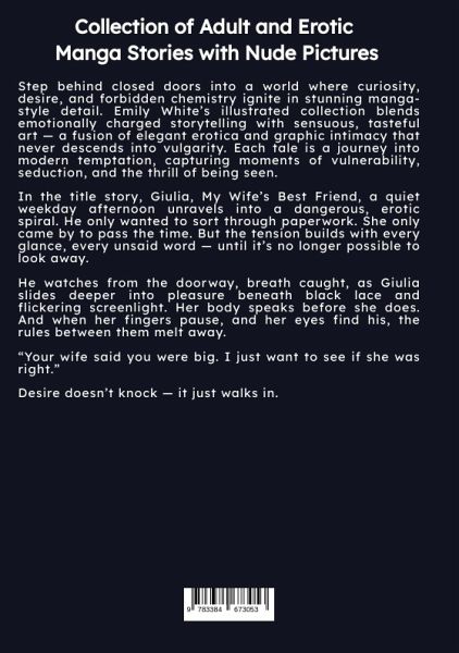 Step behind closed doors into a world where curiosity, desire, and forbidden chemistry ignite in stunning manga-style detail. Emily White's illustrated collection blends emotionally charged storytelling with sensuous, tasteful art - a fusion of elegant erotica and graphic intimacy that never descends into vulgarity. Each tale is a journey into modern temptation, capturing moments of vulnerability, seduction, and the thrill of being seen.In the title story, Giulia, My Wife's Best Friend, a quiet weekday afternoon unravels into a dangerous, erotic spiral. He only wanted to sort through paperwork. She only came by to pass the time. But the tension builds with every glance, every unsaid word - until it's no longer possible to look away.He watches from the doorway, breath caught, as Giulia slides deeper into pleasure beneath black lace and flickering screenlight. Her body speaks before she does. And when her fingers pause, and her eyes find his, the rules between them melt away."Your wife said you were big. I just want to see if she was right."Desire doesn't knock - it just walks in.