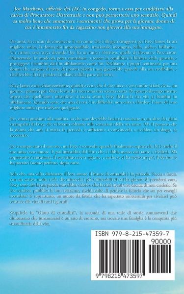 Joe Matthews, ufficiale del JAG in congedo, torna a casa per candidarsi alla carica di Procuratore Distrettuale e non può permettersi uno scandalo. Quindi sa molto bene che ammettere i sentimenti che prova per la giovane donna di cui è innamorato fin da ragazzino non gioverà alla sua immagine. Per anni, ha cercato di convincere il suo cuore che è illogico struggersi per Foxy James, la sua migliore amica, la donna più improponibile, irrazionale, incongrua, bella, audace, brillante... Un attimo, cosa stava dicendo? Joe ha un unico obiettivo, quello di diventare Procuratore Distrettuale, in modo da poter contribuire a tenere in equilibrio la bilancia della giustizia e proteggere i bambini dati in affidamento come lui. Dichiarare i propri sentimenti per una donna che sostiene di avere dei poteri psichici non gioverebbe granché alla sua credibilità, e rischierebbe di far pendere la bilancia dalla parte del torto. Foxy James è una chiarosenziente, quindi è certa che il suo unico e vero amore si farà vivo... un giorno... prima o poi. Okay, le sue doti non sono una scienza esatta. Per passare il tempo mentre aspetta che quell'uomo misterioso si faccia avanti, Foxy dedica la sua vita ai bambini in affidamento. Quando sente che uno di essi è in difficoltà, non esita a chiedere l'aiuto del suo migliore amico per risolvere quel guaio. Joe, ormai prossimo alla nomina, sa che non dovrebbe lasciarsi trascinare in un altro dei piani strampalati di Foxy, che si basano soltanto sulle sensazioni della sua amica. Ma il pensiero che la donna che ama si metta in pericolo è sufficiente a convincerlo a uccidere un drago, se necessario. Joe è sempre stato il suo eroe, ma Foxy è sconvolta quando finalmente capisce che lui è anche il suo unico vero amore. E poi infastidita dal fatto che ci abbia messo così tanto a rivelarsi. Ma soprattutto è entusiasta: il suo istinto aveva ragione, e anche se ci ha messo un po', il destino le ha portato l'uomo perfetto, dopo tutto. Solo che, una volta dichiarato il loro amore, il futuro di entrambi è in pericolo. Faccia a faccia con un cattivo molto reale che minaccia i più vulnerabili di cui ha giurato di prendersi cura, Foxy teme che la sua parola non abbia valore e che la città in cui vive decida di non crederle. Se Joe rendesse pubblica la loro relazione, rischierebbe di perdere la fiducia che sta per essergli accordata? E soprattutto, un amore da favola che ha aspettato un'eternità per rivelarsi può resistere alla vita di tutti i giorni? Scopritelo in "Giuro di custodirti", la seconda di una serie di storie commoventi che dimostrano che innamorarsi è un atto di eroismo, ma trovare una famiglia è la conquista più straordinaria della vita.