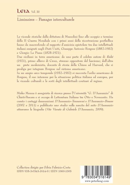 Le vicende storiche dalla dittatura di Mussolini fino allo scoppio e termine della II Guerra Mondiale con i primi anni della ricostruzione postbellica fanno da macrosfondo al rapporto d'amicizia epistolare tra due intellettuali italiani emigrati negli Stati Uniti, Giuseppe Antonio Borgese (1882-1952) e Giorgio La Piana (1878-1971). Due siciliani in terra americana: da una parte il celebre autore di Rubé (1921), primo allievo di Croce, strenuo oppositore del fascismo; dall¿altra un prete modernista, docente di storia della Chiesa ad Harvard, che si prodiga per integrare Borgese nel sistema americano. In un ampio arco temporale (1932¿1952) si racconta l¿esilio americano di Borgese, il suo interesse per la situazione politica italiana ed europea, per le vicende culturali e le sorti degli intellettuali contrari al regime.