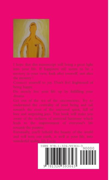 I hope that this manuscript will bring a great light into your life. If happiness still seems to be a mystery in your view, look after yourself, not after the mystery ! Connect yourself to joy. Don't feel frightened of being happy. Do merely live your life up by fulfilling your dreams. Get out of the sea of the unconscious. Try to understand the centrality of your being and sail towards the river of the universal spirit, full of love and surprising joys. This book will make you aware of the richness of universal harmony which leads to the improvement of everyone's life towards the positive. Eventually, you'll behold the beauty of the world and will turn our earth, as well as your life, into wonderful reality. Ida Lucia
