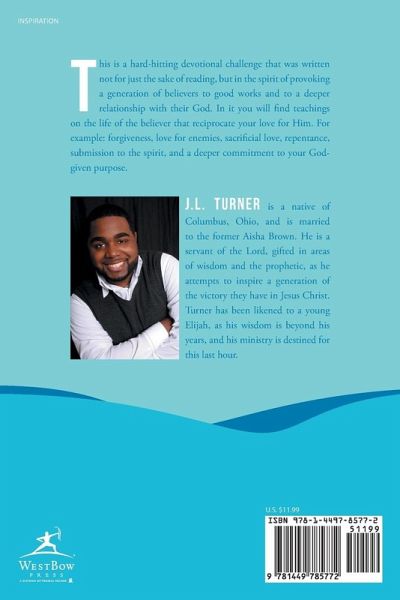 This is a hard-hitting devotional challenge that was written not for just the sake of reading, but in the spirit of provoking a generation of believers to good works and to a deeper relationship with their God. In it you will find teachings on the life of the believer that reciprocate your love for Him. For example: forgiveness, love for enemies, sacrificial love, repentance, submission to the spirit, and a deeper commitment to your God-given purpose.