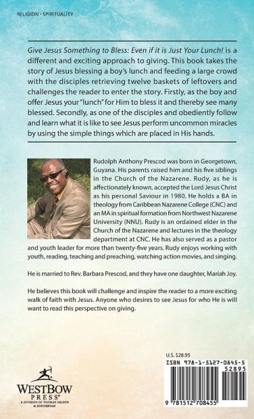 Give Jesus Something to Bless: Even if it is Just Your Lunch! is a different and exciting approach to giving. This book takes the story of Jesus blessing a boy's lunch and feeding a large crowd with the disciples retrieving twelve baskets of leftovers and challenges the reader to enter the story. Firstly, as the boy and offer Jesus your "lunch" for Him to bless it and thereby see many blessed. Secondly, as one of the disciples and obediently follow and learn what it is like to see Jesus perform uncommon miracles by using the simple things which are placed in His hands.