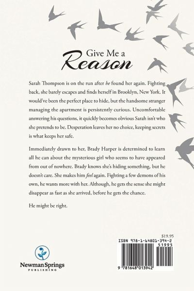Sarah Thompson is on the run after ¿he ¿found her again. Fighting back, she barely escapes and finds herself in Brooklyn, New York. It would’ve been the perfect place to hide, but the handsome stranger managing the apartment is persistently curious. Uncomfortable answering his questions, it quickly becomes obvious Sarah isn’t who she pretends to be. Desperation leaves her no choice, keeping secrets is what keeps her safe. Immediately drawn to her, Brady Harper is determined to learn all he can about the mysterious girl who seems to have appeared from out of nowhere. Brady knows she’s hiding something, but he doesn’t care. She makes him ¿feel again. Fighting a few demons of his own, he wants more with her. Although, he gets the sense she might disappear as fast as she arrived, before he gets the chance. He might be right.