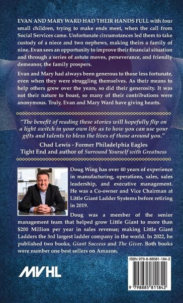Evan and Mary Ward had their hands full with four small children, trying to make ends meet, when the call from Social Services came. Unfortunate circumstances led them to take custody of a niece and two nephews, making theirs a family of nine. Evan sees an opportunity to improve their financial situation and through a series of astute moves, perseverance, and friendly demeanor, the family prospers. Evan and Mary had always been generous to those less fortunate, even when they were struggling themselves. As their means to help others grew over the years, so did their generosity. It was not their nature to boast, so many of their contributions were anonymous. Truly, Evan and Mary Ward have giving hearts.