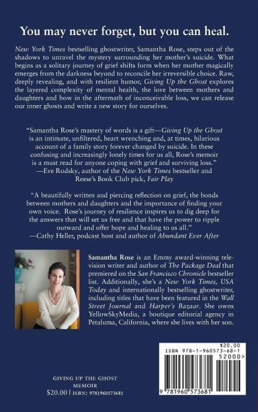 You may never forget, but you can heal. New York Times bestselling ghostwriter, Samantha Rose, steps out of the shadows to unravel the mystery surrounding her mother's suicide. What begins as a solitary journey of grief shifts form when her mother magically emerges from the darkness beyond to reconcile her irreversible choice. Raw, deeply revealing, and with resilient humor, Giving Up the Ghost explores the layered complexity of mental health, the love between mothers and daughters and how in the aftermath of inconceivable loss, we can release our inner ghosts and write a new story for ourselves. "Samantha Rose's mastery of words is a gift-Giving Up the Ghost is an intimate, unfiltered, heart wrenching and, at times, hilarious account of a family story forever changed by suicide. In these confusing and increasingly lonely times for us all, Rose's memoir is a must read for anyone coping with grief and surviving loss." -Eve Rodsky, author of the New York Times bestseller and Reese's Book Club pick, Fair Play