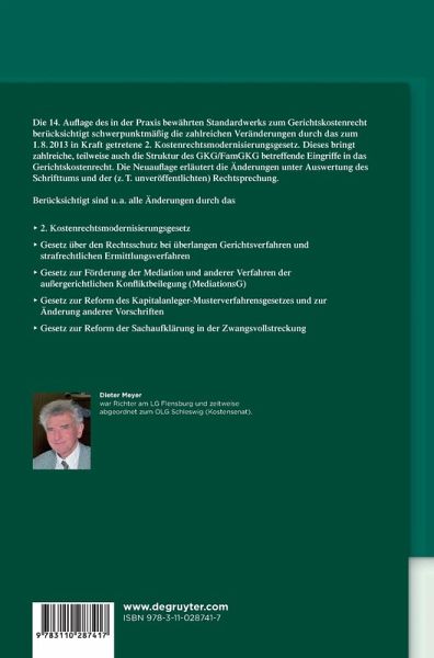 und schwerpunktmäßig natürlich die zahlreichen Veränderungen durch das zum 1.7.2013 in Kraft tretende 2. Kostenrechtsmodernisierungsgesetz. Dieses bringt zahlreiche, teilweise auch die Struktur des GKG/FamGKG betreffende, Eingriffe in das Gerichtskostenrecht. Die 14. Auflage erläutert die Normen aktuell unter Auswertung des Schrifttums und der (z.T. unveröffentlichten) Rechtsprechung bis zum Inkrafttreten der Reform.
