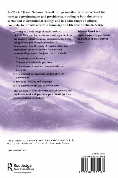 In Glacial Times, Salomon Resnik brings together various facets of his work as a psychoanalyst and psychiatrist, working in both the private sector and in institutional settings and in a wide range of cultural contexts, to provide a careful summary of a lifetime of clinical work. Drawing on a wide range of psychoanalytic, philosophical and literary sources, and vignettes from the author's extensive clinical experience, this book brings the subject of psychosis to life and demonstrates how the study of psychoanalysis and psychosis forces us to confront fundamental ontological questions. Subjects covered include: Transmission and Learning The role of the body in psychosis The Universe of Madness: Frozen words and thoughts The Internal world and the philosophy of the unconcsious Psychotic thinking and language The Symbolic order and its deficiencies. This synthesis of over fifty years of experience as a psychoanalyst and psychiatrist treating psychotic patients will fascinate anyone working in these fields.