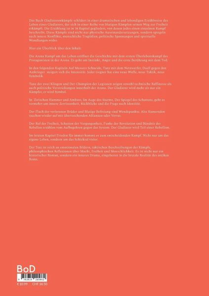 Über den Autor Alexander Armin widmet sich seit über sechzig Jahren mit großer Hingabe der Geschichte und dabei ganz besonders der faszinierenden Welt des antiken Roms. Seine Leidenschaft gilt jenen, deren Stimmen in den großen Geschichtsbüchern oft nur als Fußnoten auftauchen: den Sklaven, den Gladiatoren, den Kämpfern im Schatten der Zivilisation. Was als kindliche Faszination begann für römische Legionen, Arena-Kämpfe und politische Intrigen wurde mit den Jahren zu einem tiefgreifenden Forschungs- und Schreibinteresse. Alexander Armin liest nicht nur Quellen, er lebt sie: mit analytischem Scharfsinn, narrativer Kraft und einem unermüdlichen Drang, der Wahrheit hinter dem Mythos näherzukommen. In seinen Werken verwebt er Fakten und Vorstellungskraft, historische Tiefe und menschliche Tragik. Er betrachtet die römische Geschichte nicht aus Sicht der Herrschenden, sondern durch die Augen derer, die unter dem Joch lebten und sich dennoch aufrichteten. Besonders die Welt der Gladiatoren ist für ihn nicht nur blutiger Spektakelplatz, sondern Bühne existenzieller Fragen: Freiheit, Würde, Gewalt, Loyalität und Überleben. Mit seiner eindringlichen Sprache und dem Gespür für atmosphärische Dichte gelingt es ihm, aus längst vergangener Zeit ein erzählerisches Jetzt zu formen, packend, authentisch und zutiefst menschlich.