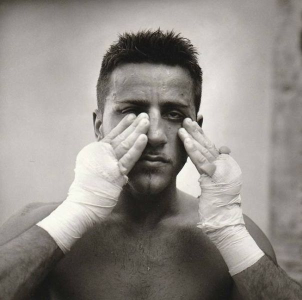 Bodies, sweat, the direct gaze; strength, courage, doubt; the visual and emotional alphabet of Piero Pompili's work is characterized by intensely striking images. For 15 years, the artist photographed the world of boxing in Rome and Naples, in the gyms of the borgata, and in the catacombs where even the ancient gladiators prepared for their fights. The source of this fascination was a childhood spent in the Borghesiana (a local community in Rome), where he was born in 1967.
