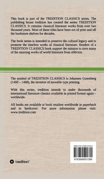 This book (hardcover) is part of the TREDITION CLASSICS. It contains classical literature works from over two thousand years. Most of these titles have been out of print and off the bookstore shelves for decades. The book series is intended to preserve the cultural legacy and to promote the timeless works of classical literature. Readers of a TREDITION CLASSICS book support the mission to save many of the amazing works of world literature from oblivion. With this series, tredition intends to make thousands of international literature classics available in printed format again worldwide.