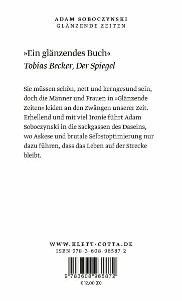 Sie müssen schön, nett und kerngesund sein, doch die Männer und Frauen in Glänzende Zeiten leiden an den Zwängen unserer Zeit. Erhellend und mit viel Ironie führt Adam Soboczynski an die Sackgassen des Daseins, wo Askese und brutale Selbstoptimierung nur dazu führen, dass Leben auf der Strecke bleibt.