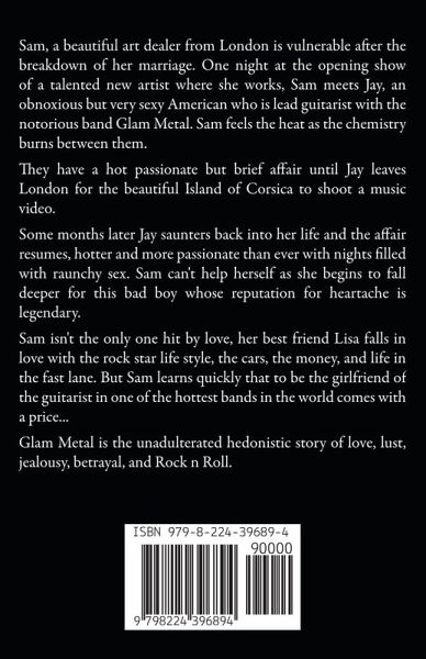 Sam, a beautiful art dealer from London is vulnerable after the breakdown of her marriage. One night at the opening show of a talented new artist where she works, Sam meets Jay, an obnoxious but very sexy American who is lead guitarist with the notorious band Glam Metal. Sam feels the heat as the chemistry burns between them. They have a hot passionate but brief affair until Jay leaves London for the beautiful Island of Corsica to shoot a music video. Some months later Jay saunters back into her life and the affair resumes, hotter and more passionate than ever with nights filled with raunchy sex. Sam can't help herself as she begins to fall deeper for this bad boy whose reputation for heartache is legendary. Sam isn't the only one hit by love, her best friend Lisa falls in love with the rock star life style, the cars, the money, and life in the fast lane. But Sam learns quickly that to be the girlfriend of the guitarist in one of the hottest bands in the world comes with a price... Glam Metal is the unadulterated hedonistic story of love, lust, jealousy, betrayal, and Rock n Roll.