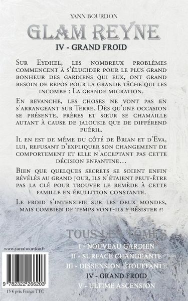 Sur Eydhel, les nombreux problèmes commencent à s'élucider pour le plus grand bonheur des gardiens qui eux, ont grand besoin de repos pour la grande tâche qui les incombe : La grande migration.En revanche, les choses ne vont pas en s'arrangeant sur Terre. Dès qu'une occasion se présente, frères et soeur se chamaille autant à cause de jalousie que de différend puéril.Il en est de même du côté de Brian et d'Eva, lui, refusant d'expliquer son changement de comportement et elle n'acceptant pas cette décision enfantine...Bien que quelques secrets se soient enfin révélés au grand jour, ils n'étaient peut-être pas la clé pour trouver le remède à cette famille en ébullition constante.Le froid s'intensifie sur les deux mondes, mais combien de temps vont-ils y résister ?!