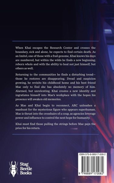 When Khai escapes the Research Center and crosses the boundary, sick and alone, he expects to find certain death. As an Imitel, one of those with a frail genome, Khai knows his days are numbered, but within the wilds he finds a new beginning; reborn whole and with the ability to heal not just himself, but others as well. Returning to the communities he finds a disturbing trend-those he restores are disappearing. Dread and suspicion growing, he revisits his childhood home and his best friend Mae only to find she has absolutely no memory of him. Alarmed, but unrelenting, Khai creates a new identity and ingratiates himself into Mae's workplace with the hopes his presence will awaken old memories. As Mae and Khai begin to reconnect, ARC unleashes a manhunt for the mysterious figure who appears superhuman. Mae is thrust into the crosshairs of a coup, as agencies leverage power and influence to control the next hope for humanity. Khai must find those pulling the strings before Mae pays the price for his return.
