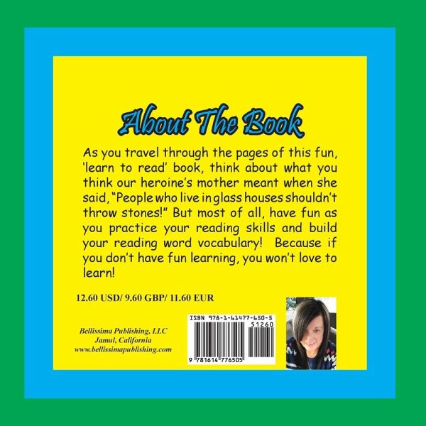 As our heroine is leaving the house to go out to play, her mother tells her, "People who live in glass houses shouldn't throw stones!" And if you're wondering from when and where this saying came, the answer is that this proverb appeared in Chaucer's Troilus and Criseyde, written in 1385. And do you know what it means? Our heroine certainly didn't! So, she sets about to ask just about everyone she knows what her mother meant, beginning (as usual) with the elephant! Think about what you think our heroine's mother meant, as you practice your reading skills and build your reading word vocabulary through word recognition, word repetition and rhyme, all of which you will find on the pages of this fun, 'learn to read' book written and illustrated by the award winning author, attorney and former K-6 teacher, Penelope Dyan. But most of all, have fun as you learn; because learning must be (and should always be) fun! Then, when you're all finished traveling through this book, you can go to Bellissimavideo's YouTube channel and watch the free, fun music video that goes with this book!