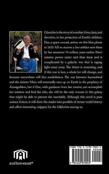 Glassidor is the story of a mother's love, duty, and devotion, in her protection of Earth's children. Dee, a space nomad, arrives on this blue planet in 1620 AD to recover a lost artifact sent there by her ancestors 74 million years earlier. Dee's mission proves easier said than done and is complicated by a galactic war that is raging light-years away. The threat is mounting, and if this war is lost, a whole lot will change, and humans everywhere will face annihilation. The war between humankind and the sinister Muss will eventually turn up on Earth in the prophecy of Armageddon, but if Dee, with guidance from her creator, can accomplish her mission and find the relic, she will be the only woman in this galaxy that might be able to prevent the inevitable. Although this novel is pure science fiction, it will draw the reader into parallels of recent world history and offers interesting snippets for the folklorists among us.
