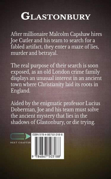 After millionaire Malcolm Capshaw hires Joe Cutler and his team to search for a fabled artifact, they enter a maze of lies, murder and betrayal. The real purpose of their search is soon exposed, as an old London crime family displays an unusual interest in an ancient town where Christianity laid its roots in England. Aided by the enigmatic professor Lucius Doberman, Joe and his team must solve the ancient mystery that lies in the shadows of Glastonbury, or die trying.