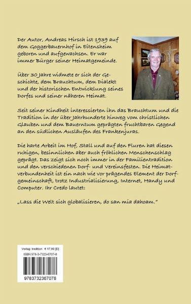 Der Autor, Andreas Hirsch ist 1939 auf dem Goggerbauernhof in Eitensheim geboren und aufgewachsen. Er war immer Bürger seiner Heimatgemeinde.
